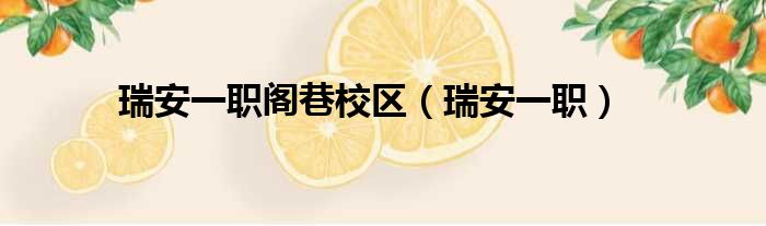 导读 大家好,小活来为大家解答以上的问题。瑞安一职阁巷校区,瑞安一职这个很多人还不知道,现在让我们一起来看看吧!1、本部校址:浙江省瑞安市体