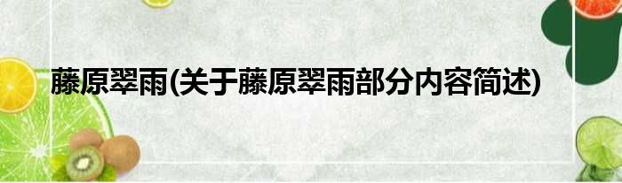 藤原翠雨(关于藤原翠雨部分内容简述)