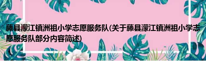 藤县濛江镇洲祖小学志愿服务队(关于藤县濛江镇洲祖小学志愿服务队部分内容简述)