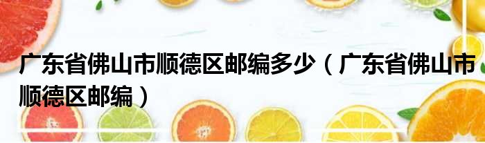 广东省佛山市顺德区邮编多少(广东省佛山市顺德区邮编)