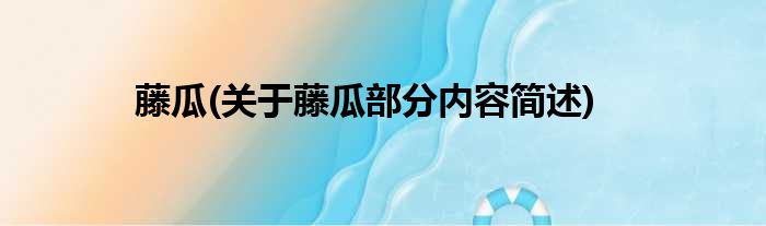 大家好,今天小方来说说一篇关于藤瓜,关于藤瓜部分内容简述的文章,那么现在就为大家来简单介绍下,希望对各位小伙伴们有所帮助。