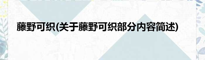 大家好,今天小方来说说一篇关于藤野可织,关于藤野可织部分内容简述的文章,那么现在就为大家来简单介绍下,希望对各位小伙伴们有所帮助。