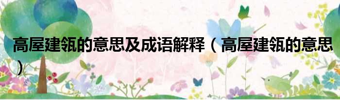 高屋建瓴的意思及成语解释(高屋建瓴的意思)