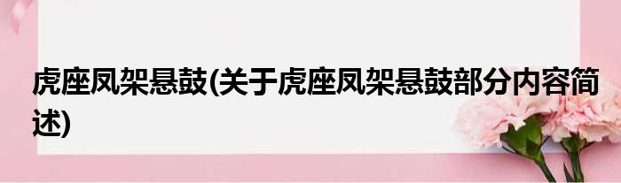 导读 大家好,今天小方来说说一篇关于虎座凤架悬鼓,关于虎座凤架悬鼓部分内容简述的文章,那么现在就为大家来简单介绍下,希望对各位小伙伴们有