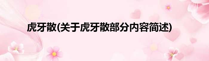 导读 大家好,今天小方来说说一篇关于虎牙散,关于虎牙散部分内容简述的文章,那么现在就为大家来简单介绍下,希望对各位小伙伴们有所帮助。