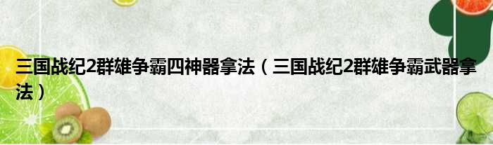 三国战纪2群雄争霸四神器拿法(三国战纪2群雄争霸武器拿法)