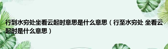 行到水穷处坐看云起时意思是什么意思(行至水穷处 坐看云起时是什么意思)