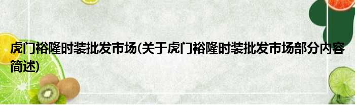 虎门裕隆时装批发市场(关于虎门裕隆时装批发市场部分内容简述)