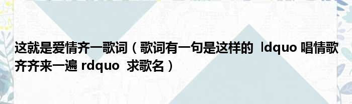 这就是爱情齐一歌词(歌词有一句是这样的 ldquo 唱情歌齐齐来一遍 rdquo 求歌名)