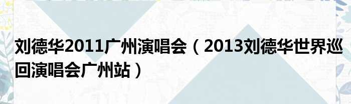 刘德华2011广州演唱会(2013刘德华世界巡回演唱会广州站)