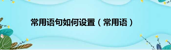 大家好,小活来为大家解答以上的问题。常用语句如何设置,常用语这个很多人还不知道,现在让我们一起来看看吧!