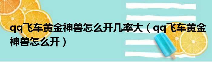 qq飞车黄金神兽怎么开几率大(qq飞车黄金神兽怎么开)