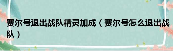 赛尔号退出战队精灵加成(赛尔号怎么退出战队)