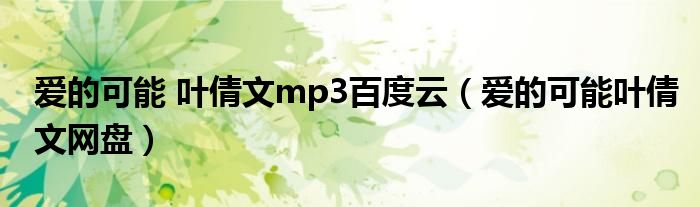 大家好,小活来为大家解答以上的问题。爱的可能 叶倩文mp3百度云,爱的可能叶倩文网盘这个很多人还不知道,现在让我们一起来看看吧!