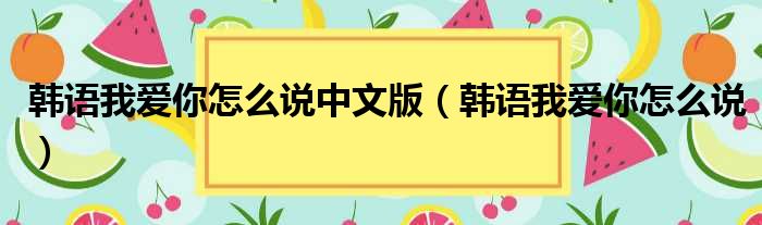 韩语我爱你怎么说中文版(韩语我爱你怎么说)
