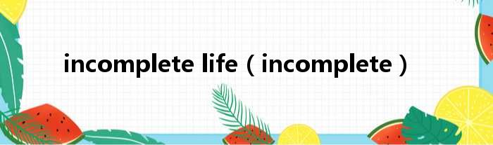 大家好,小活来为大家解答以上的问题。incomplete life,incomplete这个很多人还不知道,现在让我们一起来看看吧!