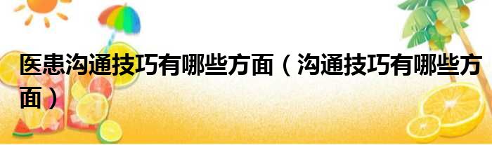 医患沟通技巧有哪些方面(沟通技巧有哪些方面)