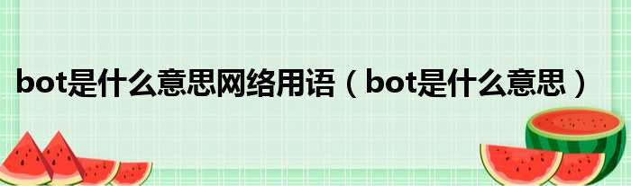 大家好,小活来为大家解答以上的问题。bot是什么意思网络用语,bot是什么意思这个很多人还不知道,现在让我们一起来看看吧!