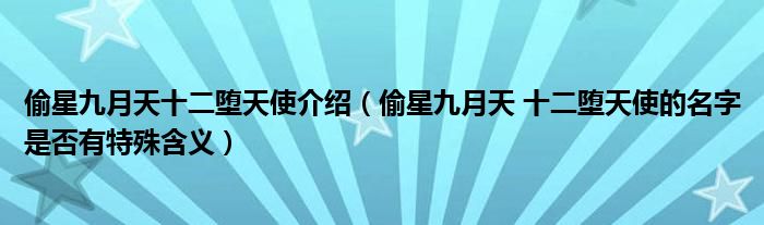 偷星九月天十二堕天使介绍(偷星九月天 十二堕天使的名字是否有特殊含义)