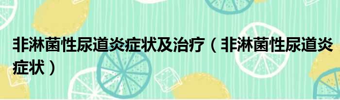 非淋菌性尿道炎症状及治疗(非淋菌性尿道炎症状)
