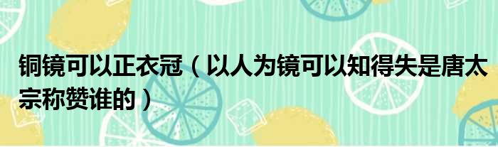铜镜可以正衣冠(以人为镜可以知得失是唐太宗称赞谁的)