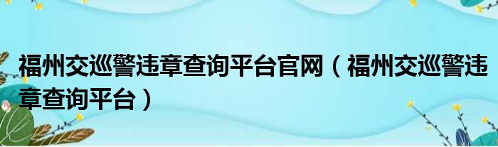 福州交巡警违章查询平台官网(福州交巡警违章查询平台)