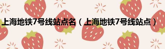 大家好,小活来为大家解答以上的问题。上海地铁7号线站点名,上海地铁7号线站点这个很多人还不知道,现在让我们一起来看看吧!