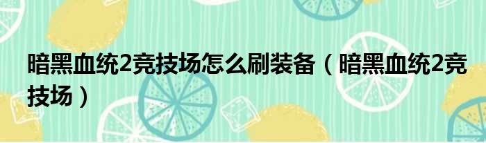 暗黑血统2竞技场怎么刷装备(暗黑血统2竞技场)