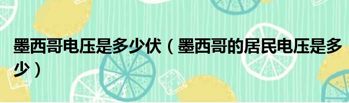 墨西哥电压是多少伏(墨西哥的居民电压是多少)