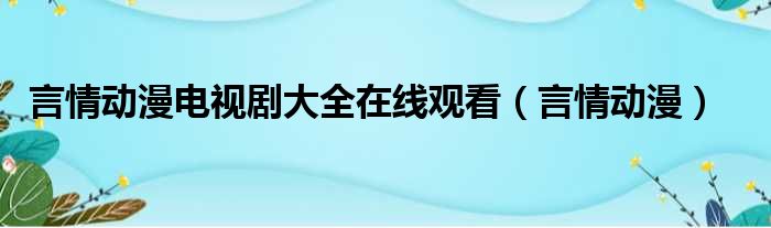 大家好,小活来为大家解答以上的问题。言情动漫电视剧大全在线观看,言情动漫这个很多人还不知道,现在让我们一起来看看吧!