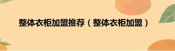 大家好,小活来为大家解答以上的问题。整体衣柜加盟推荐,整体衣柜加盟这个很多人还不知道,现在让我们一起来看看吧!