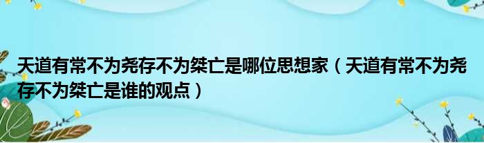 天道有常不为尧存不为桀亡是哪位思想家(天道有常不为尧存不为桀亡是谁的观点)