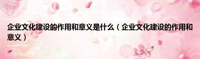 企业文化建设的作用和意义是什么(企业文化建设的作用和意义)