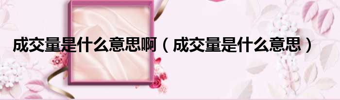 成交量是什么意思啊(成交量是什么意思)