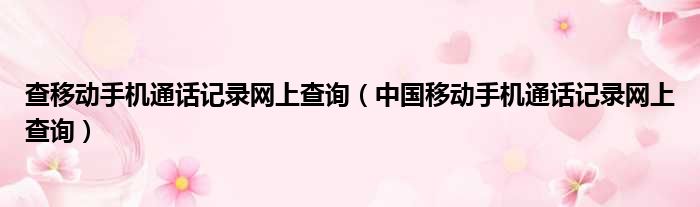 查移动手机通话记录网上查询(中国移动手机通话记录网上查询)