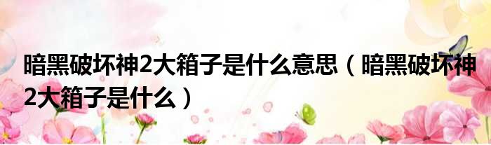 暗黑破坏神2大箱子是什么意思(暗黑破坏神2大箱子是什么)