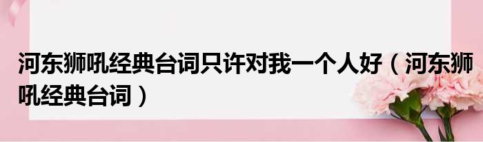 大家好,小活来为大家解答以上的问题。河东狮吼经典台词只许对我一个人好,河东狮吼经典台词这个很多人还不知道,现在让我们一起来看看吧!