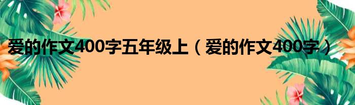 大家好,小活来为大家解答以上的问题。爱的作文400字五年级上,爱的作文400字这个很多人还不知道,现在让我们一起来看看吧!