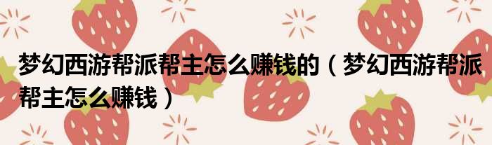 梦幻西游帮派帮主怎么赚钱的(梦幻西游帮派帮主怎么赚钱)