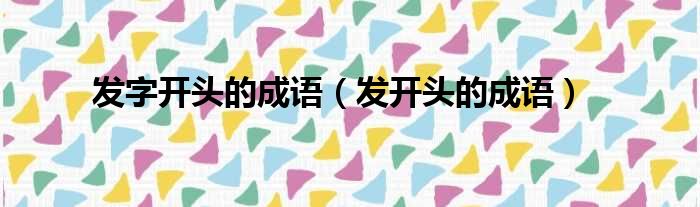 大家好,小活来为大家解答以上的问题。发字开头的成语,发开头的成语这个很多人还不知道,现在让我们一起来看看吧!