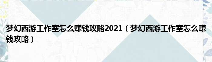 梦幻西游工作室怎么赚钱攻略2021(梦幻西游工作室怎么赚钱攻略)