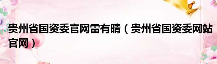 贵州省国资委官网雷有晴(贵州省国资委网站官网)