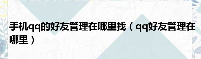 手机qq的好友管理在哪里找(qq好友管理在哪里)