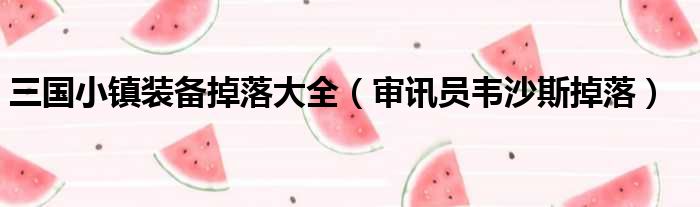 三国小镇装备掉落大全(审讯员韦沙斯掉落)