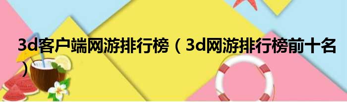 3d客户端网游排行榜(3d网游排行榜前十名)