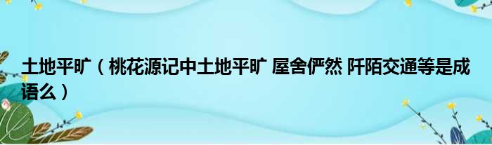 土地平旷(桃花源记中土地平旷 屋舍俨然 阡陌交通等是成语么)