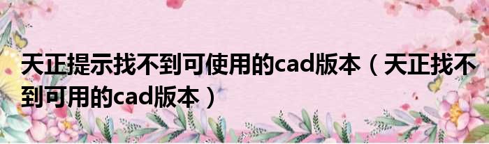 天正提示找不到可使用的cad版本(天正找不到可用的cad版本)