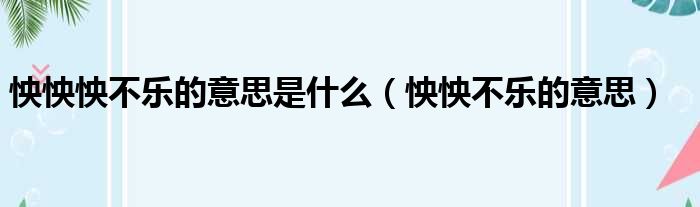 怏怏怏不乐的意思是什么(怏怏不乐的意思)