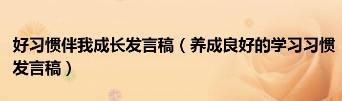 好习惯伴我成长发言稿(养成良好的学习习惯发言稿)