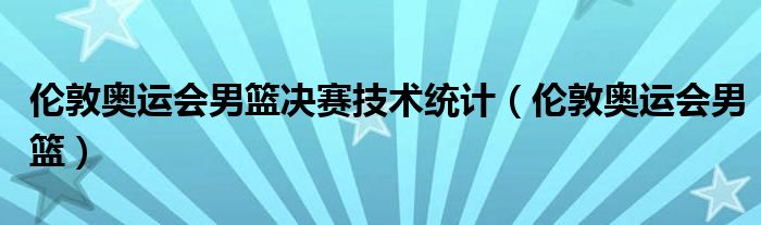 伦敦奥运会男篮决赛技术统计(伦敦奥运会男篮)